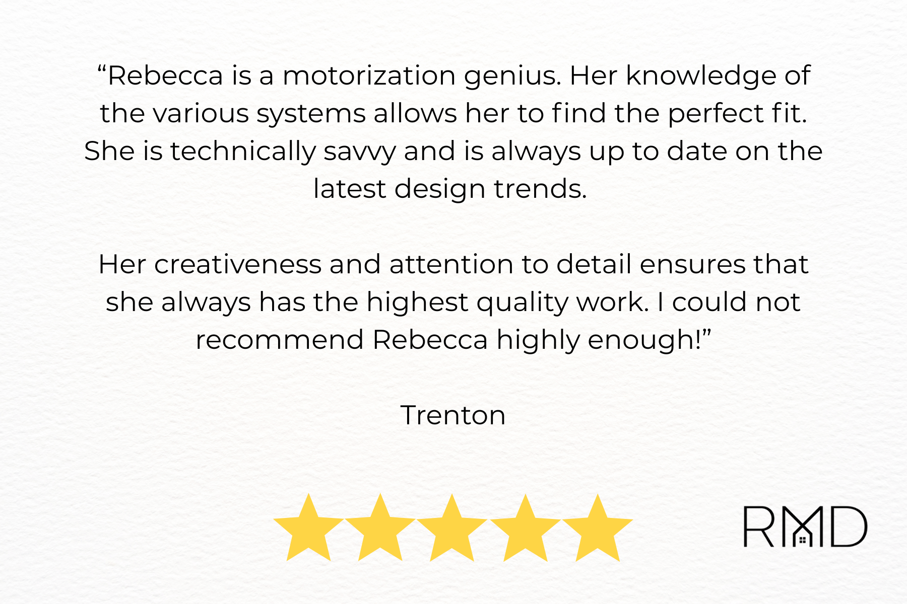 Trusted Trade Partner. Designers, builders, and discerning homeowners choose RMD for reliability, craftsmanship, and the confidence of working with seasoned professionals.